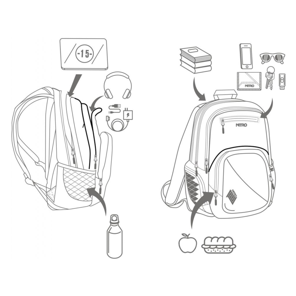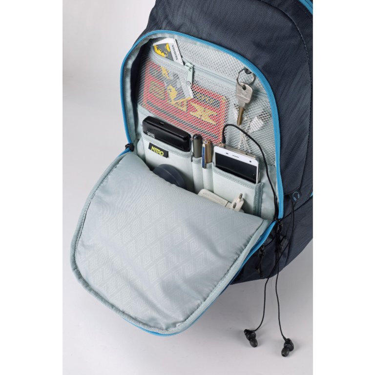 The Nitro Stash is a spacious backpack, ideal for school or city, with a cushioned 15" laptop sleeve and a cooling pocket for a snack or drink. The backpack features a fleece lined pocket for sunglasses, an organizer pocket and side mesh and zip pockets.