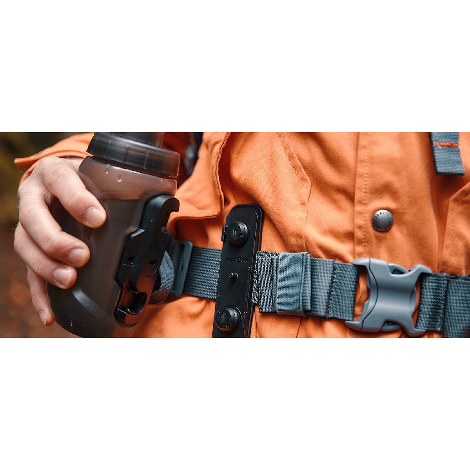 The universal Uni Tex Base Multi holder for the Fidlock Twist system is used to attach it to the backpack strap so that your bottle is always within reach even off the bike. You attach the holder to the vertical strap with a rubber ring or to a horizontal strap with a proven clamping mechanism. Uni Tex Base Multi is compatible with all bottles and other Fidlock Twist accessories.