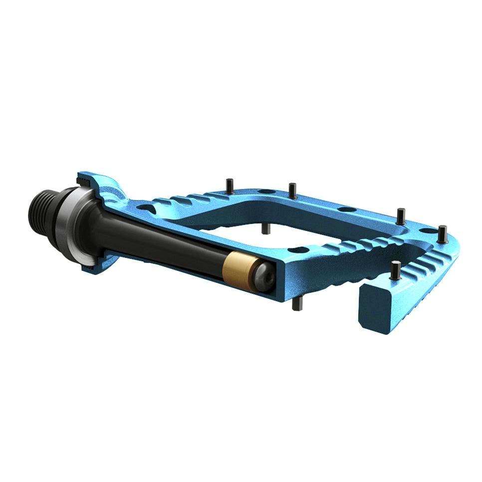 The OneUp Aluminum Pedals features a huge (115x105mm) super grippy platform with 10 rear-loading hexagonal steel pins per side to keep your feet planted on even the roughest of trails. With a weight of only 386g, the OneUp Aluminum Pedals won't slow you down on the climbs.