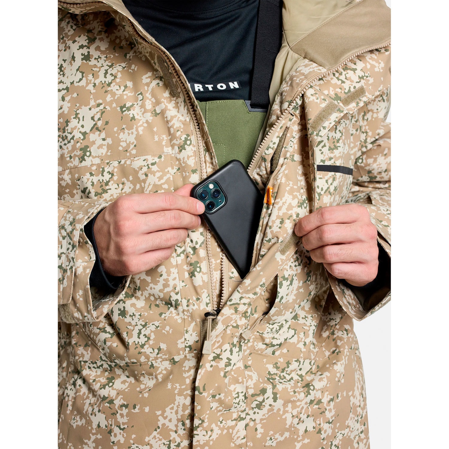 Snowboard jackets are also equipped with a snowcatcher/snow skirt on the inside. This is a feature that protects the body from snow and wind. It fastens with buttons and can be detached on some jackets. To prevent it from rolling up, it is covered with rubber underneath. Nowadays, snowcatchers have loops that can be attached to the pants. No more snow piling up on your back under your jacket!