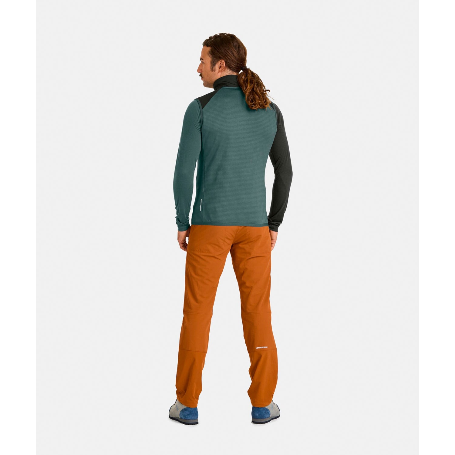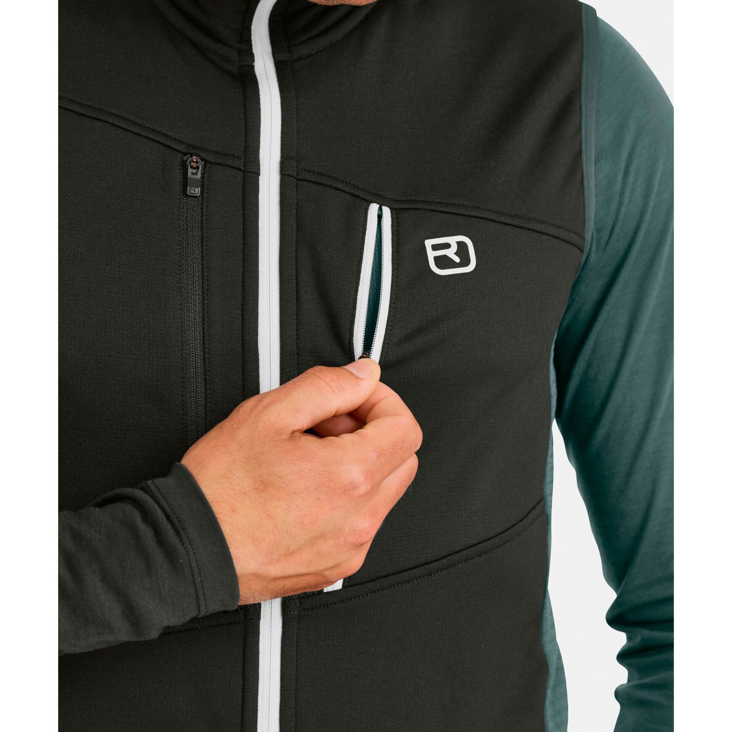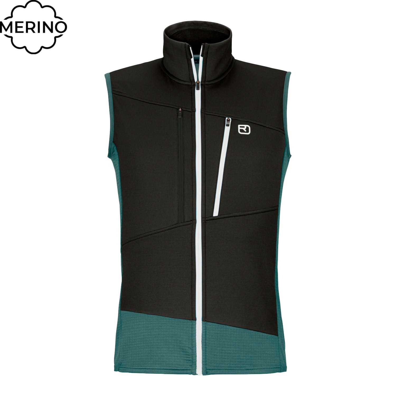 The merino Fleece Grid material traps warm air in its fine waffle structure on the inside and wicks moisture to the outside, so the vest not only provides comfortable warmth, but also dries quickly and is extremely breathable. Comfortably soft merino wool on your skin ensures optimum climate regulation and prevents odors forming. Exposed areas such as the chest, shoulders and head are protected from wind and cold by elastic, breathable Merino Fleece Light.